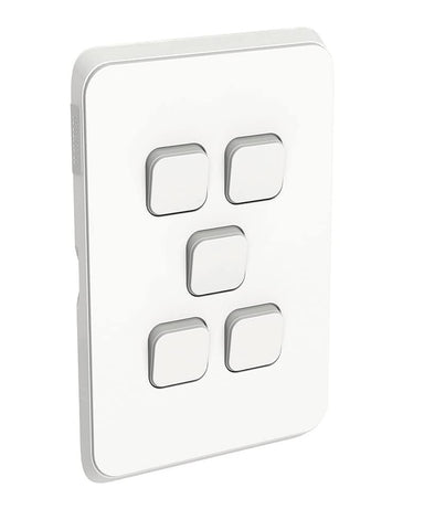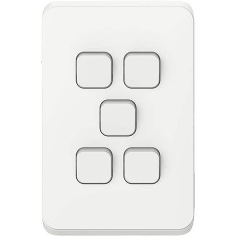 Iconic 250V 5 Gang 1-Way/2-Way Flush Switch, White V1202-V1-CLI3045VAVW