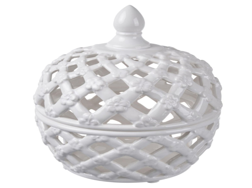 Lattice Decorative Lidded Jar Flower Motive 24cm V637-20730