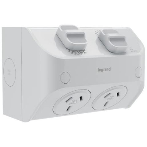 Legrand Aqua Life 240V 10A IP53 Double Gang 3 Pin Horizontal Weatherproof Surface Mount Switch, V1202-V1-LEGWL777LG