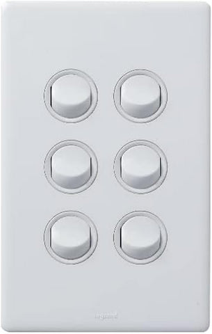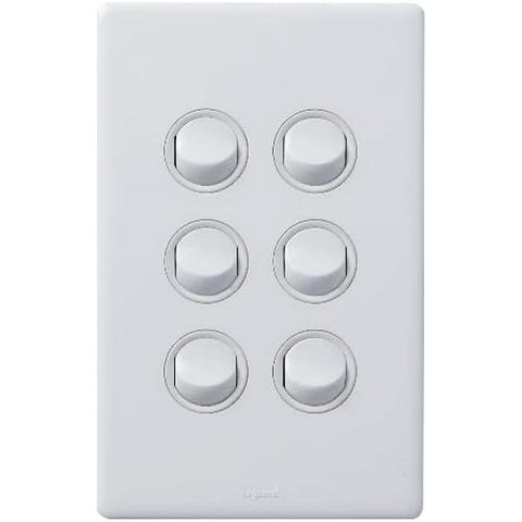 Legrand Excel Life 16AX 230/240V 6 Gang Flush Switch, White V1202-V1-LEGED7706WE