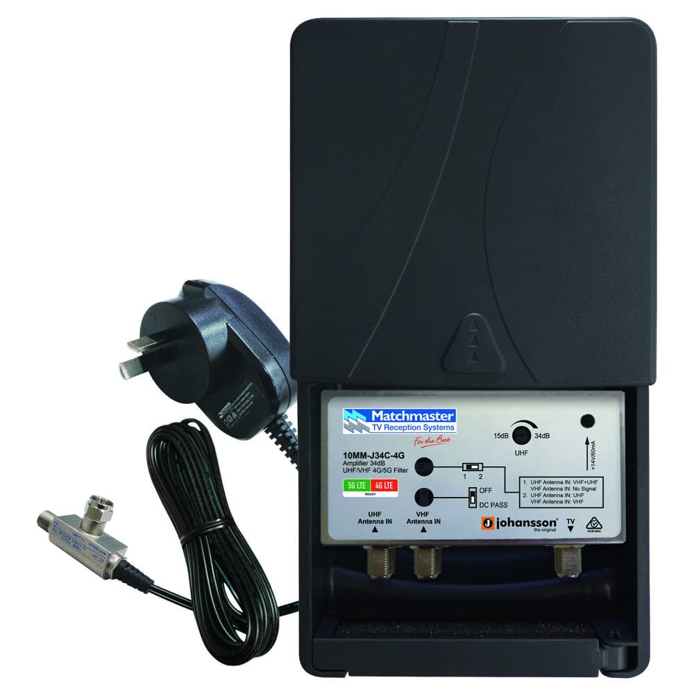 Matchmaster 10MM-J34C-4GP UHF/VHF 34dB Amplifier with 4G/5G Filter & Power Supply V1202-V1-MAT10MM-J34C-4GP