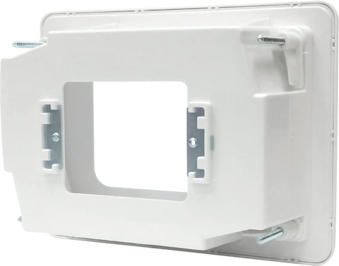 The 04MM-RP01 is a recessed wall point used to house outlet plates such as power, TV, A/V, data points and all general purpose outlets. Matchmaster’s recessed wall point is simple to use with its cut-out template provided and the smart folding wall clips to lock the unit in place quickly. The RP01 is ideal for use behind kitchen appliances, A/V cabinets, flat-screen TVs, bedroom furniture and any appliance flush against any wall.