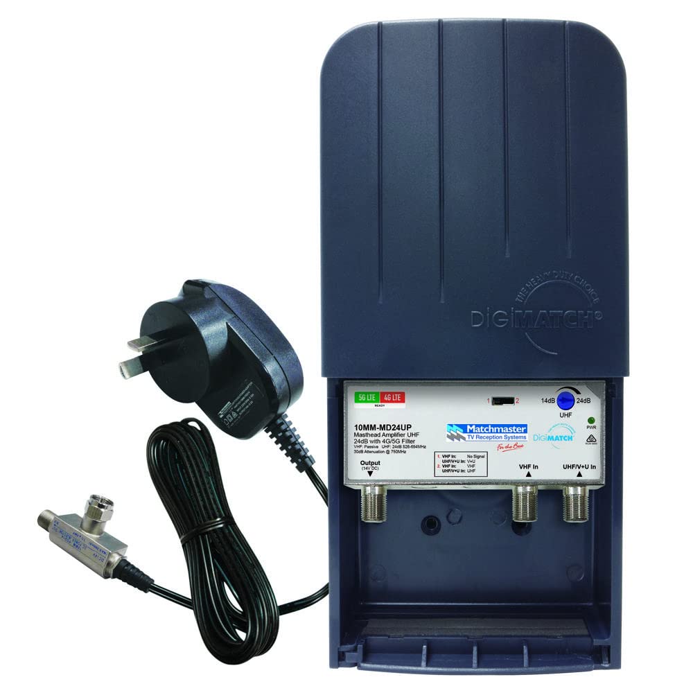 Matchmaster UHF 24dB Masthead Amplifier with 4G/5G Filter and Power Supply V1202-V1-MAT10MM-MD24UP