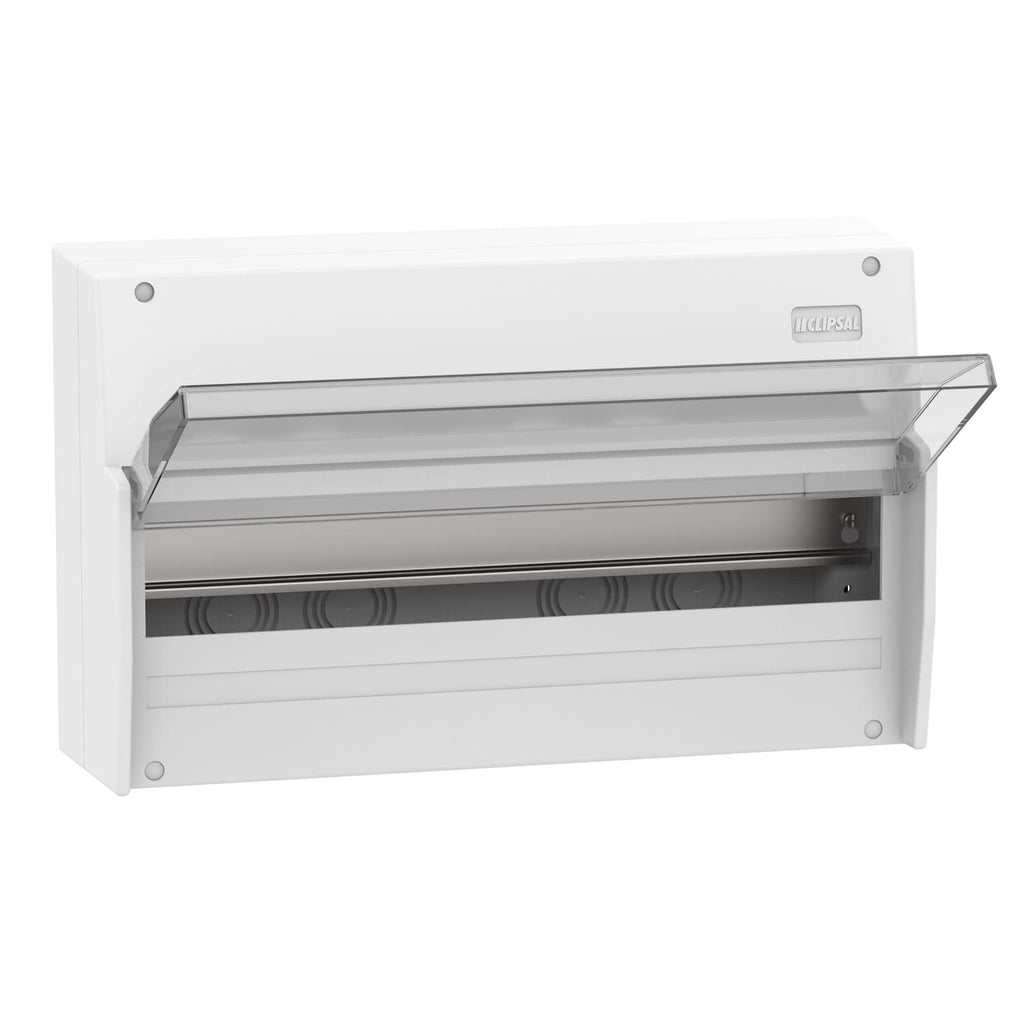 Clipsal MAX9 240/415V AC 1 Row 17 Modules Surface Mounted Switchboard Enclosure is made of high quality material. Removable DIN rail brings to help organise the cables in position before mounting the devices. Ample earth and neutral terminals to suit typical configurations and comply to men type system. Position of door on left or right for multirow row enclosures brings adaptability in tight corners. Reversible back box for multirow enclosures allows flexibility to choose the position on earth/neutral bar to your style.