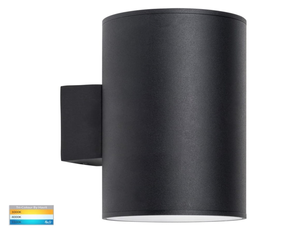 Porter Aluminium 2 x 15W 240V Up/Down Round Tri-Colour LED Wall Light, Black V1202-V1-HVLHV3629T-BLK