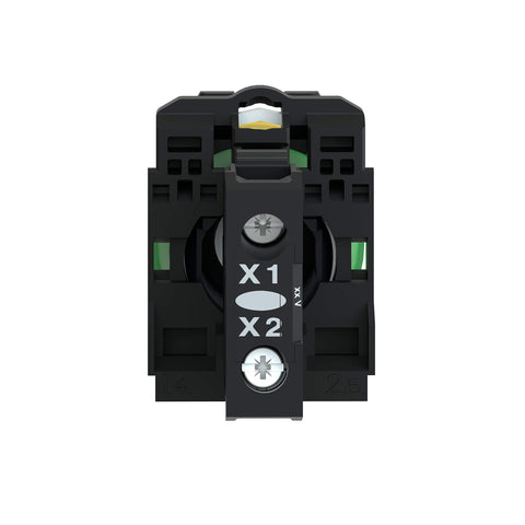 Schneider Electric Plastic Pilot Lights supplied with 230V to 240V AC, uses a universal LED and screw clamp terminals. This pilot light, designed to last without maintenance for a bright indication of process and machine operations, is easily installed into standard 22mm diameter cut-outs and connected with simple screw-clamp connections. It is clearly distinguishable visually at a distance thanks to a bright and long lasting LED illumination. It is impact resistant, dust resistant, water resistant and vibration resistant thanks to its IP66/IP67/IP69/IP69K, making it ideal for operation in harsh environments. Its plastic bezel makes it ideal for applications requiring good resistance to chemical agents and/or double electrical insulation.