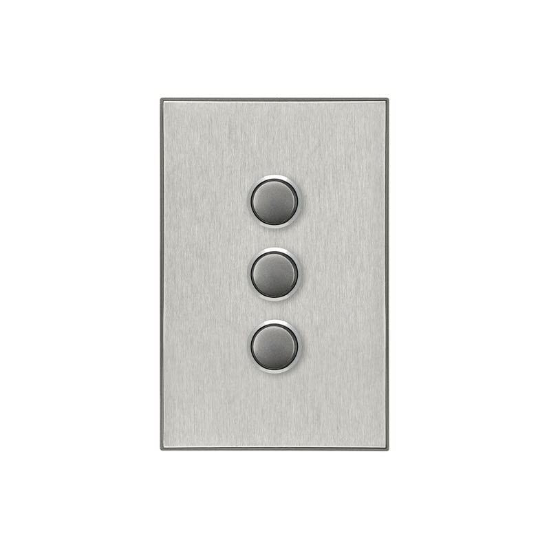 Schneider Electric Saturn Series 4000 3 Gang Push Button LED Switch, Horizon Silver V1202-V1-CLI4063PBLHS