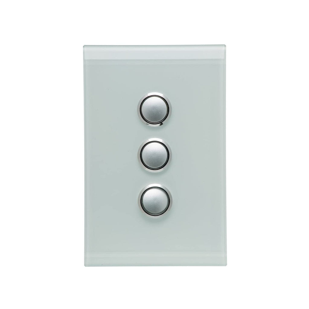 Schneider Electric Saturn Series 4000 3 Gang Push Button LED Switch, Ocean Mist V1202-V1-CLI4063PBLOM