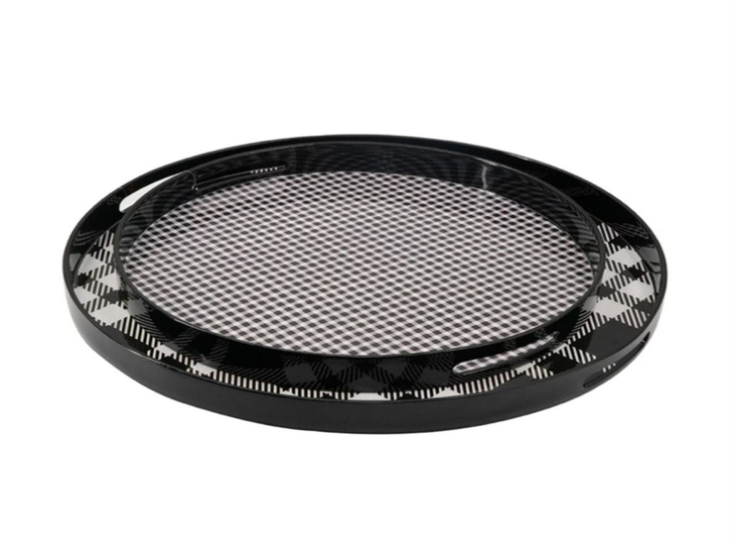 Set 2 Plaid Motif Round Trays 48cm V637-20957