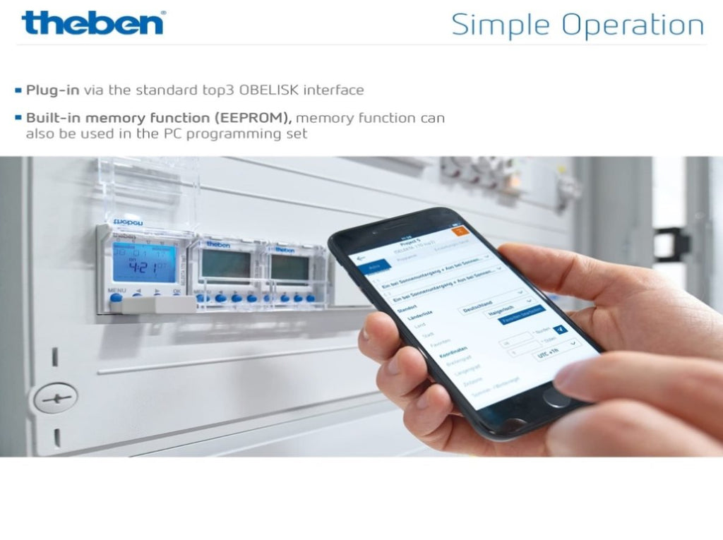 • Maximum manipulation security, time switch programs can only be transferred from the app to the time switch when the Bluetooth OBELISK top3 is plugged into the time switch