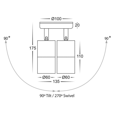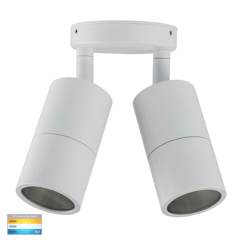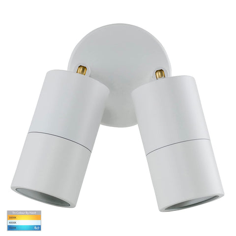 Tivah 2 x 5W 240V GU10 LED Tri-Colour Double Adjustable Wall Pillar Light, White V1202-V1-HVLHV1337GU10T