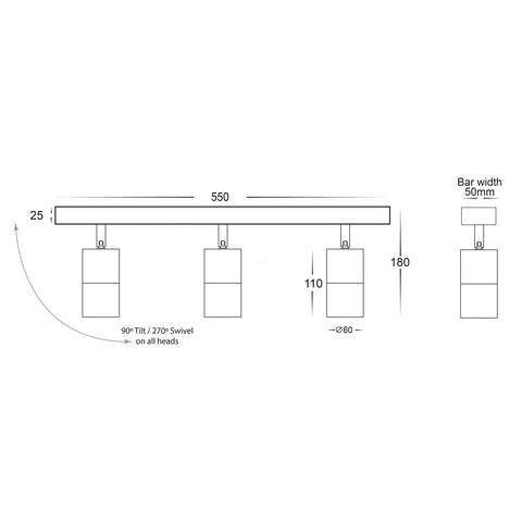 Havit Lighting Bar Adjustable Spotlights are an ideal choice to brighten a larger space as they feature multiple adjustable lights for greater coverage, 90˚ tilt and 270˚ swivel, high output reflector to maximise light. IP rating: IP54. Input voltage: 240v AC. It is made from black coloured aluminium.