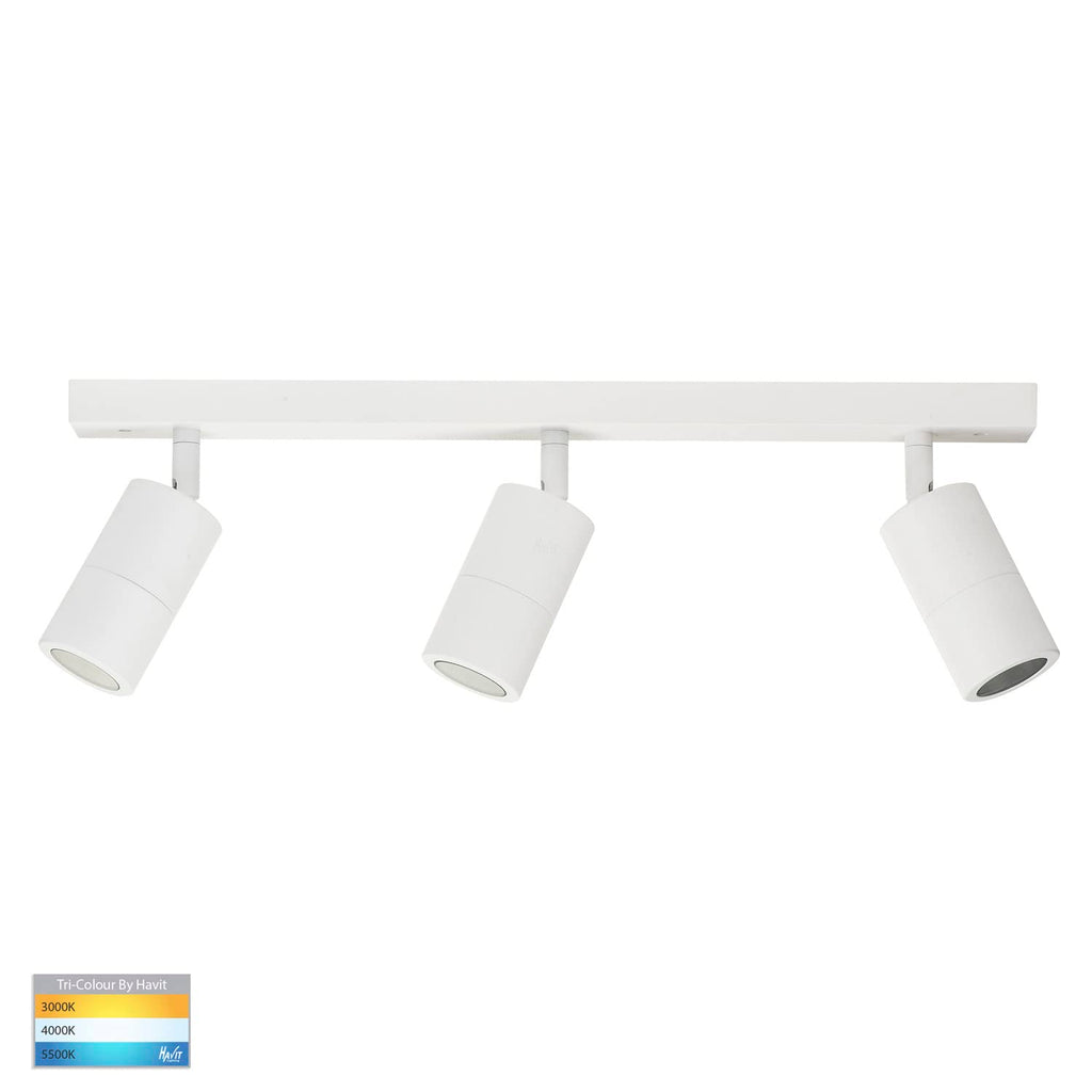 Tivah 3 x 5W 240V GU10 LED Tri-Colour 3 Light Bar Adjustable Spotlight, White V1202-V1-HVLHV4001T-3-WHT
