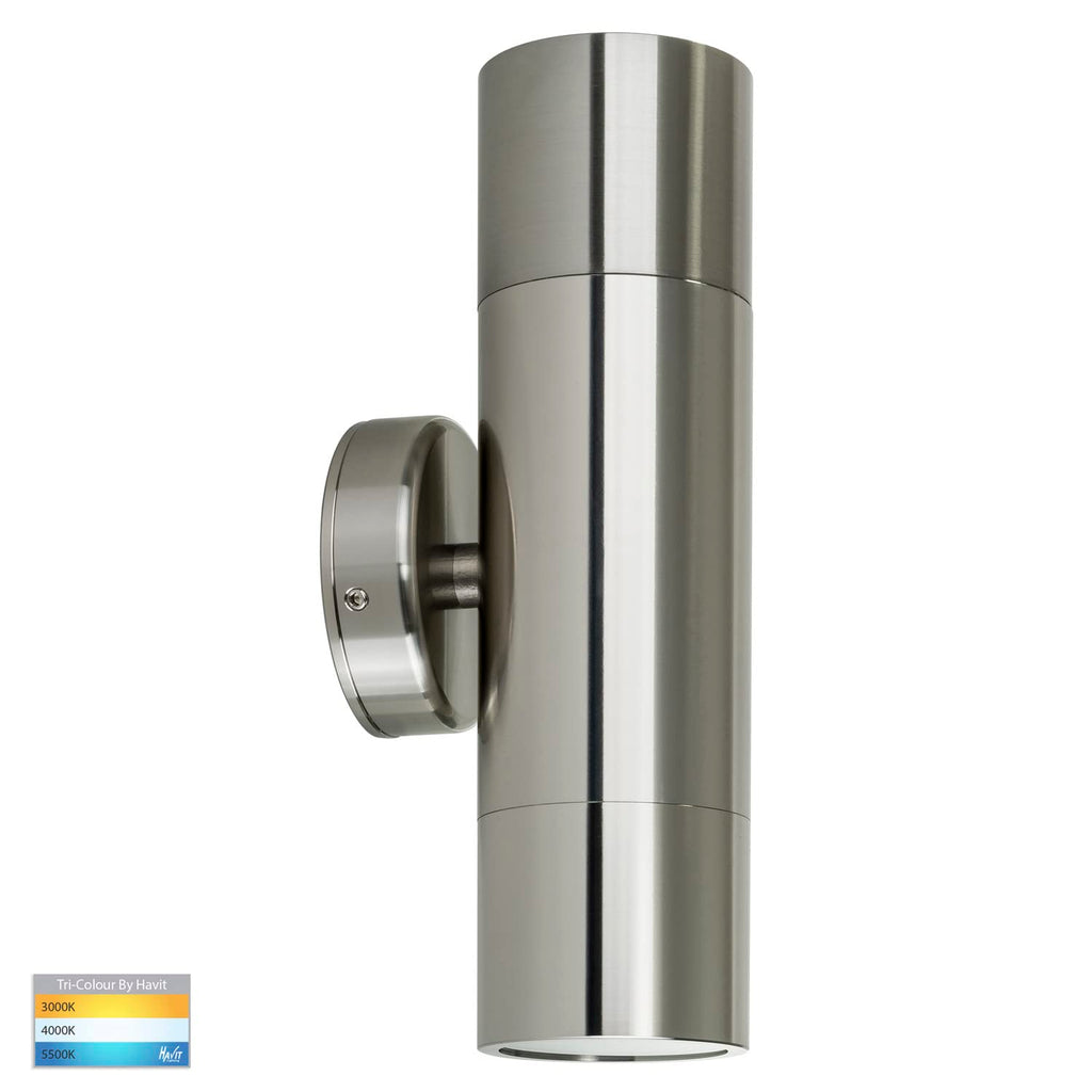 Havit Lighting Tivah Tri Colour Up/Down Wall Pillar Light is fitted with high output reflectors to maximize illumination. It is made from marine grade 316 stainless steel. It includes a matching stainless steel backing plate. Tri colour with 3000k, 4000k and 5500k colour temprature. IP Rating: IP65. It has 2 x 5W GU10 LED. Beam Angle: 120 degrees. Input Voltage: 240V.