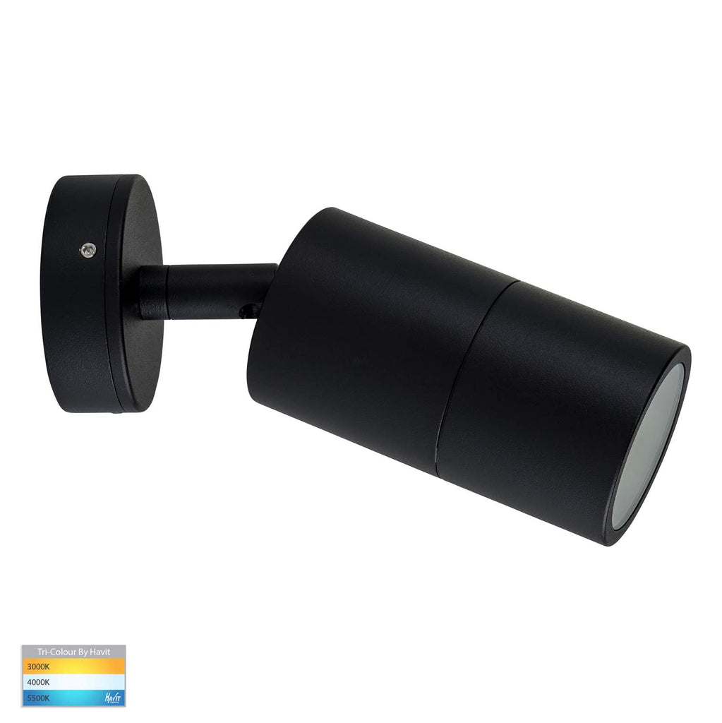 Havit Lighting Tivah Black 3/5/7W 240V GU10 LED Tri Colour Single Adjustable Wall Pillar Light has aluminium poly powder coated black body. It includes matching backing plate. Features high output reflector to maximise light. Designed to be mounted on walls and provide directional light to suit your home decor style and taste, creating a stunning atmosphere to your exterior area become more enjoyable, pleasant, while still providing safety and security.