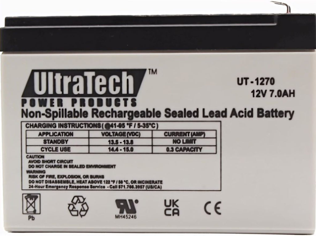 UltraTech UT1270 12V 7Ah Lead Acid Alarm Battery UT-1270 V1202-V1-HSA01-060