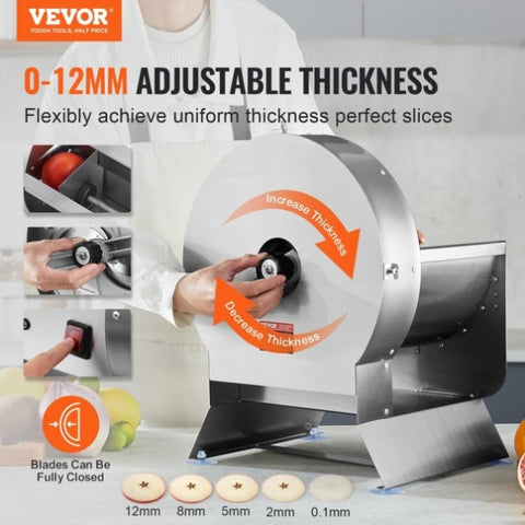 VEVOR Electric Vegetable Slicer, 0-0.5"/0-12mm Thickness Adjustable Commercial Slicer Machine, V952-DDSCQPJBXG133TSLKV3