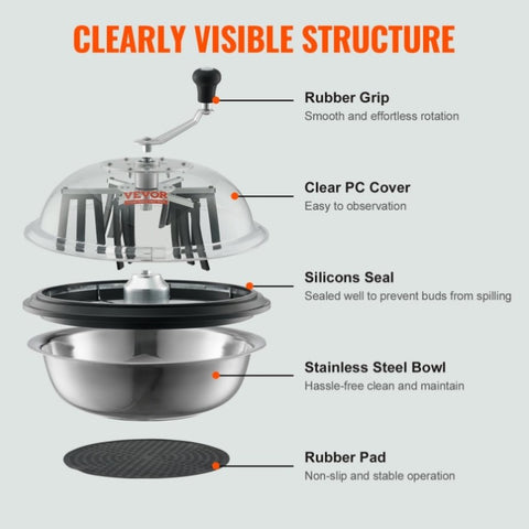 VEVOR Leaf Bowl Trimmer 16'' Manual Bud Trimmer with Stainless-Steel Blades V952-SDSCJ16INCHPIOOBOV0