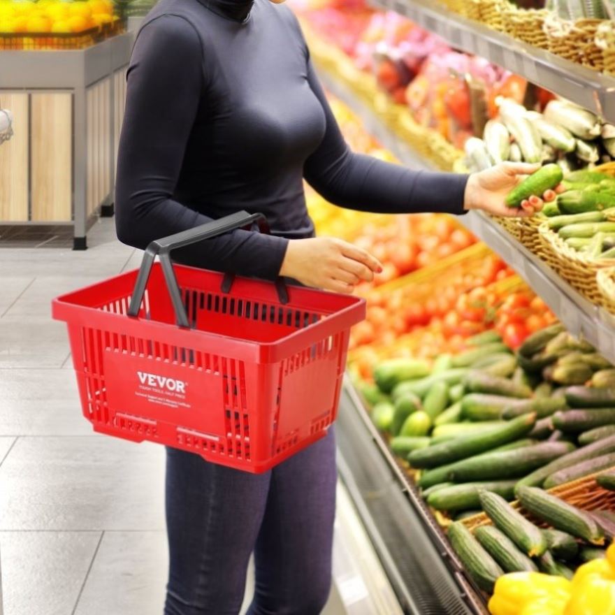 VEVOR Shopping Basket, Set of 12, 24L Durable Plastic Grocery Basket with Handle and Stand, 425 x V952-GXSBSSLGWLHS08MIEV0