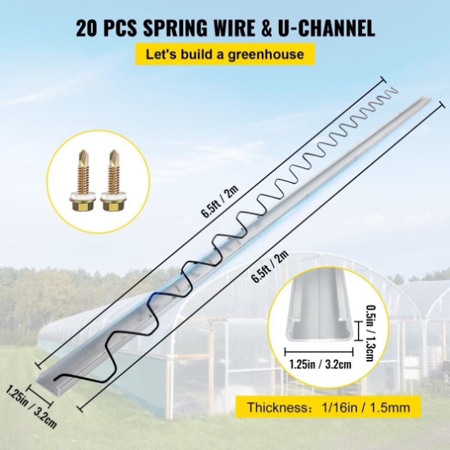 VEVOR Spring Wire and Lock Channel,2 m Spring Lock & U-Channel Bundle for Greenhouse, 20 Packs PE V952-YMCKCTZLHJ2202VQ5V0