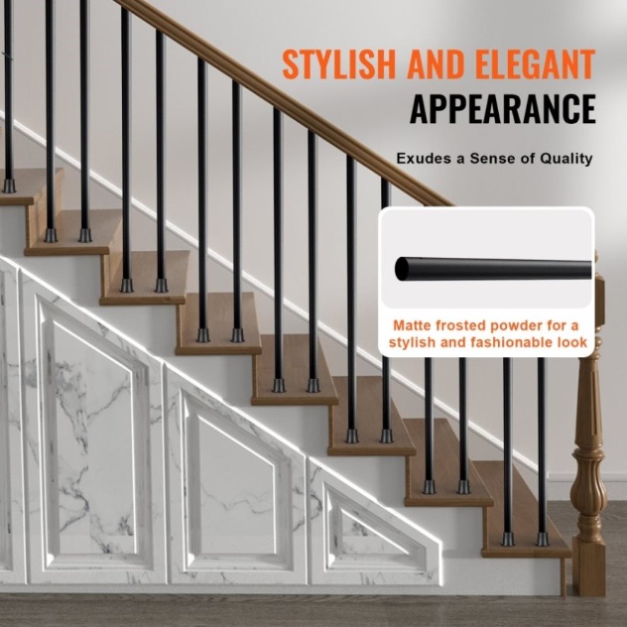 Crafted from 0.03''/0.8mm thick aluminum tubing, our baluster shafts boast unrivaled strength and durability. Coated with a matte powder finish, they exude a sleek, scratch-resistant surface that withstands wear and tear with ease. Supported by steel pipes, they offer superior stability, ensuring they remain firm and steadfast over prolonged use.