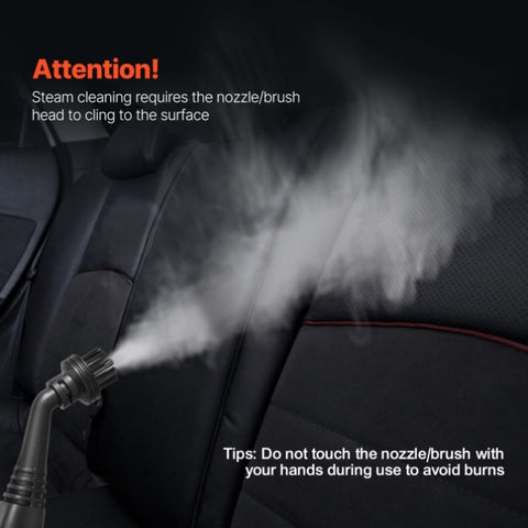 With an extra-long 4.9 ft / 1.5 m steam hose and 16.4 ft / 5 m power cord, this car detailing steamer offers excellent maneuverability and reach for hard-to-access areas. The low center-of-gravity design, portable handle, and swivel wheels ensure effortless movement and stability during cleaning.
