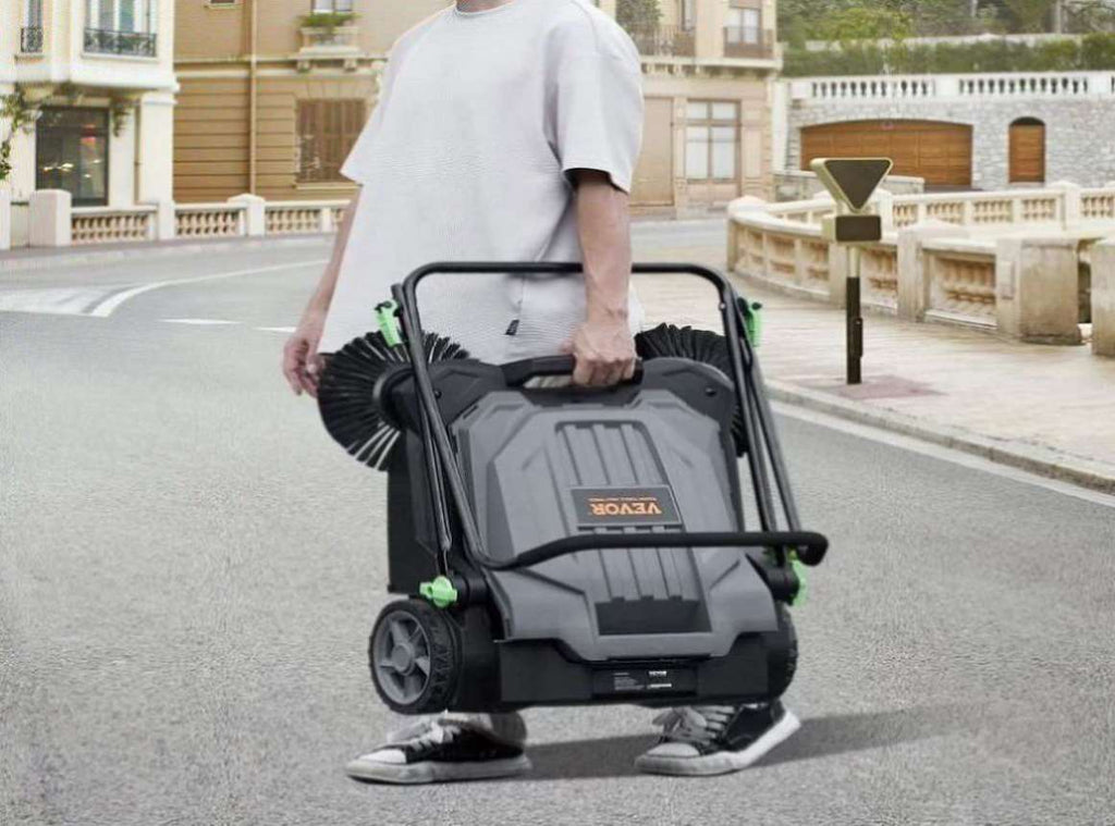 VEVOR walk-behind hand push floor sweeper adopts human-powered sweeping mechanism, breaking free from the electricity and fuel constraints. No need for repetitive back-and-forth movements like laborious brooms, our large side brushes cover 25.6-inch large sweeping paths in one go, ensuring thorough and rapid cleaning, 5 times faster than traditional brooms.