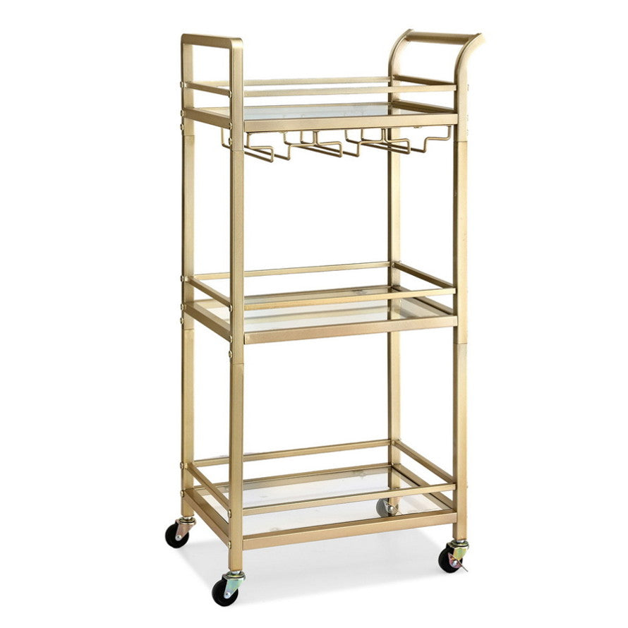 Artiss Kitchen Island Cart Trolley Rolling Serving Storage Wine Glass 43cm Gold FUR-Z-BC-GLASS-43