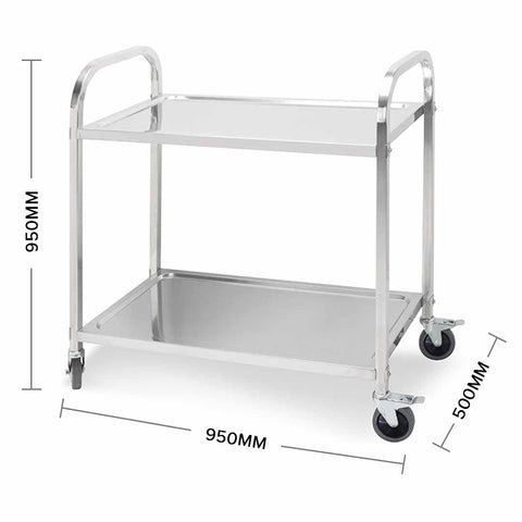 SOGA 2 Tier 95x50x95cm Stainless Steel Kitchen Dining Food Cart Trolley Utility Large FOODCART1004