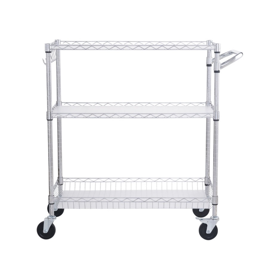 Are you ready to get more out of your kitchen space VEVOR's 3-tier utility cart with NSF certification is made of industrial-strength steel, ensuring durability and resistance to deformation. It can carry up to 661 lbs / 300 kg of heavy objects, perfect for storing and transporting large kitchen appliances, heavy machinery, etc. Time to load up and roll!