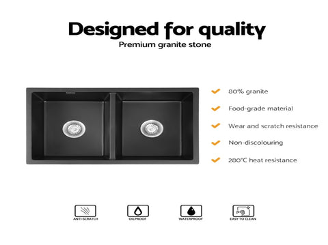 Cefito Kitchen Sink 77x45cm Granite Stone Sink Double Bowl Black SINK-STONE-A-7745-BK