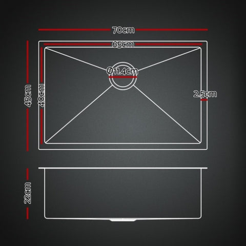 Cefito Stainless Steel Sink 70x45CM With Pull Out Mixer Tap Kitchen Basin Single Bowl Black SINK-BLACK-7045-07