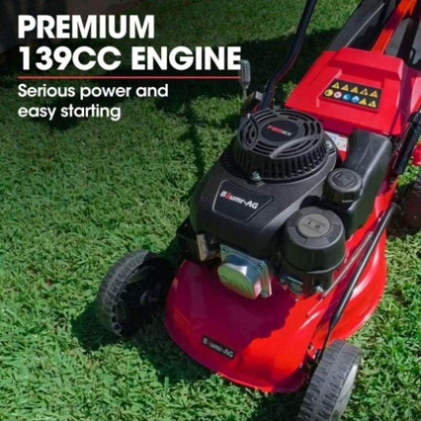 Baumr-AG Lawn Mower 139CC 17 Petrol Push Lawnmower 4-Stroke Engine Catch V219-MOWPSHBMRA17S