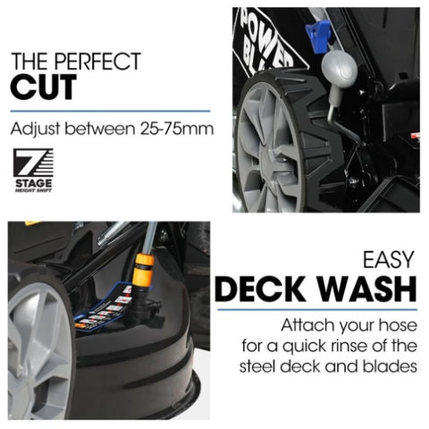 Maintenance is a breeze with the easy-to-use deck port β just attach your hose for a quick and thorough clean. Upgrade to the PowerBlade VS900 and look forward to a superior lawn with less effort.