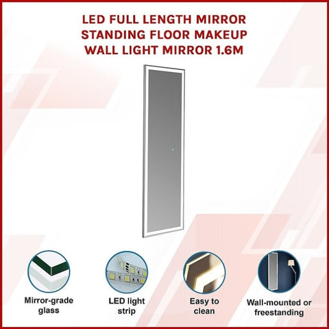 LED Full Length Mirror Standing Floor Makeup Wall Light Mirror 1.6M V63-833711