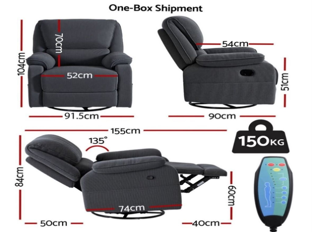 Artiss Rocking Recliner Chair 360 Swivel Massage Heated Reclining Chairs RECLINER-A19-COR-GY