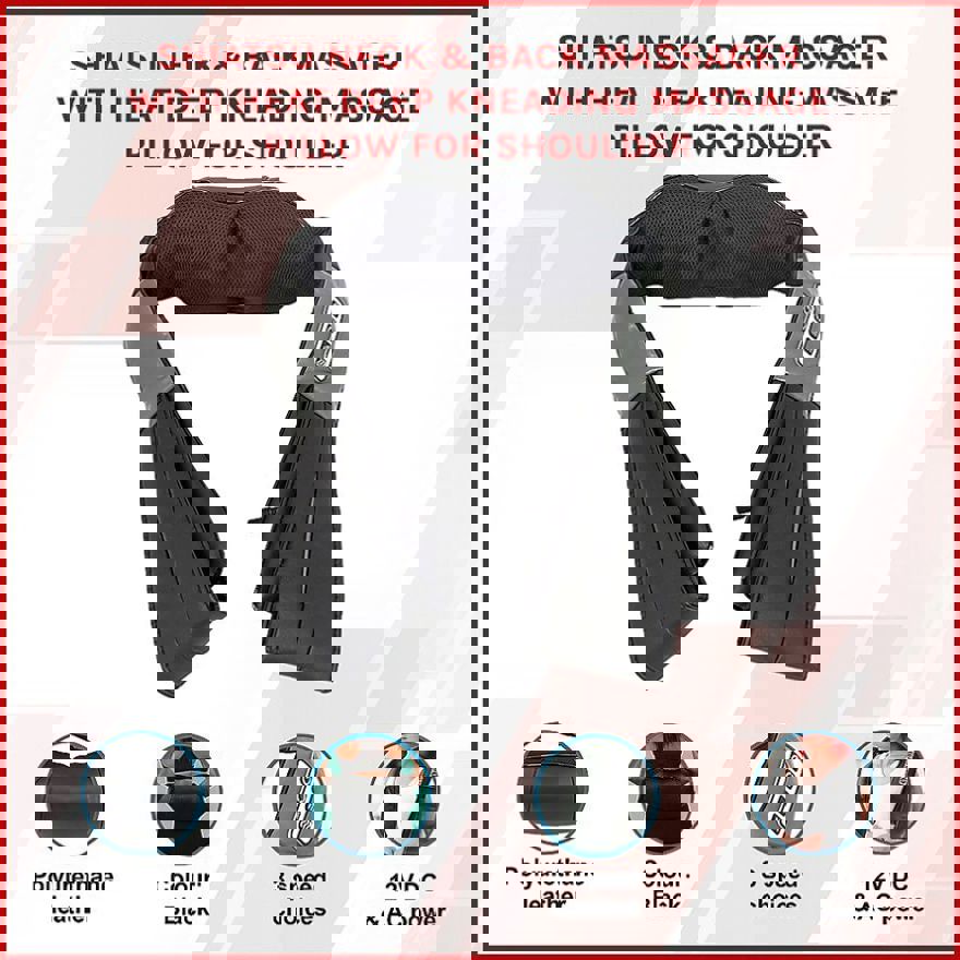 Shiatsu Neck & Back Massager with Heat Deep Kneading Massage Pillow for Shoulders V63-835881