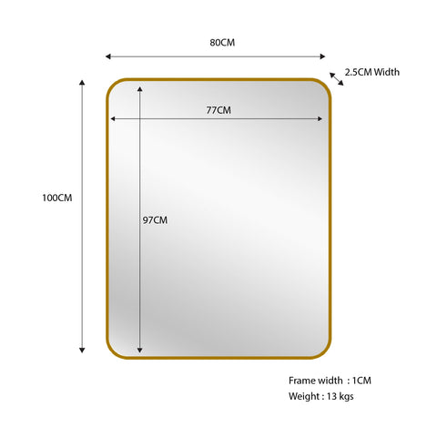 Total Mirror : Length 80cm x 100cm x Width 6.5 CM