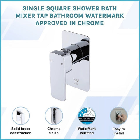 Single Square Shower Bath Mixer Tap Bathroom WATERMARK Approved in Chrome V63-847951