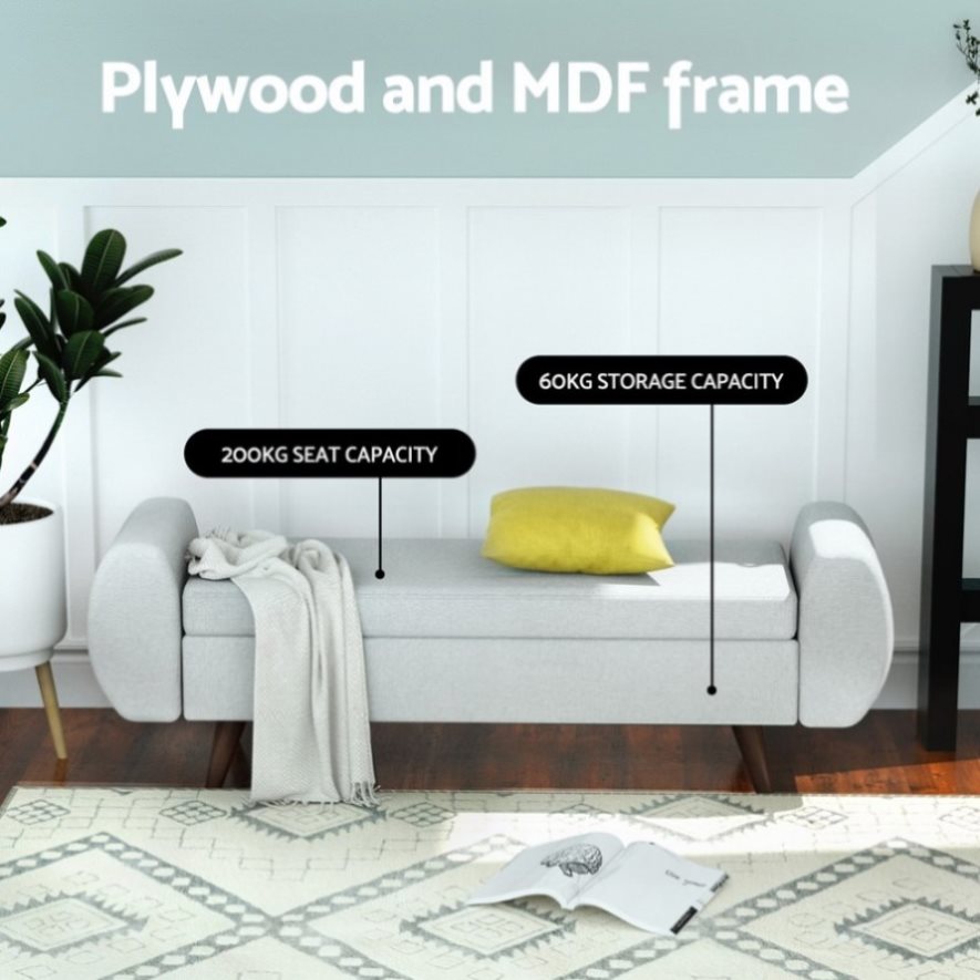 Artiss Storage Ottoman Blanket Box Armrest 140cm Grey OTM-RTA-07-ARM-GY-AB