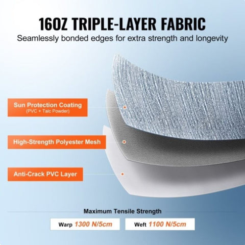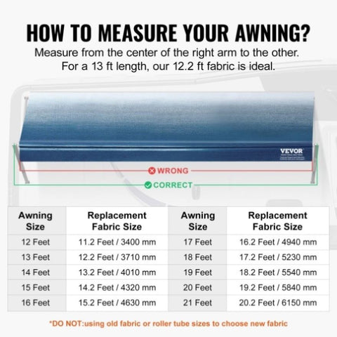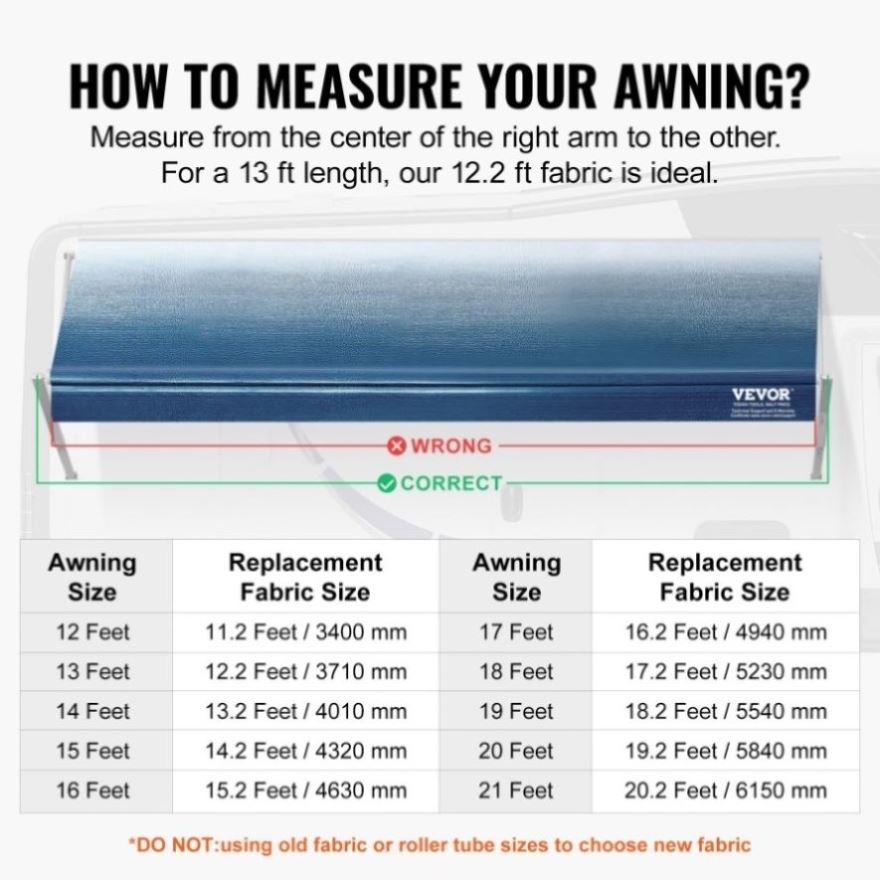 VEVOR RV Awning Fabric Replacement, 3.72m Fabric Length for 3.96mAwning, Heavy Duty 3-Ply 16oz PVC V952-FCZYPML13YC0JJS9NV0