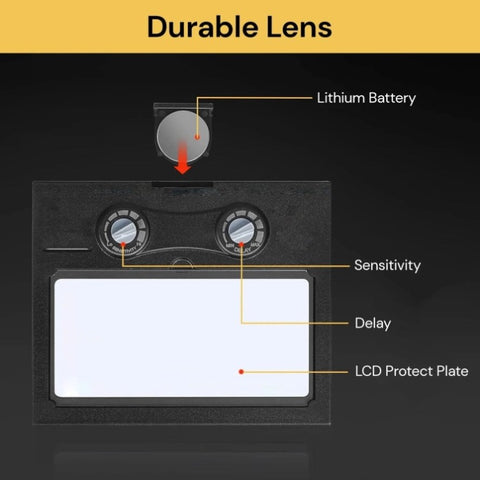 Intelligent & Practical:The Auto Darkening Filter enables welders to adapt to various working environments by controlling the shade of the lens; Sensitivity adjustments from ambient lighting sources; Battery powered with solar panel technology for longer life ,utilizes high performance solar cells w/ built-in 3V lithium batteries(CR2032) as power back up.