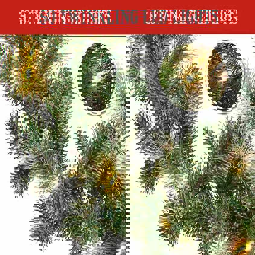 This garland comes with 50 warm white LED lights to create a festive atmosphere.