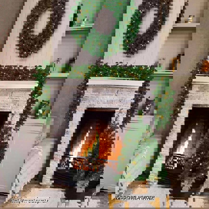 Looking to add a pop of vibrant green to your holiday festivities Check out the stunning garland from the Chadwick Green collection! It features lifelike foliage and lush green branches, all lit up by warm white LED lights with 9 different light settings.