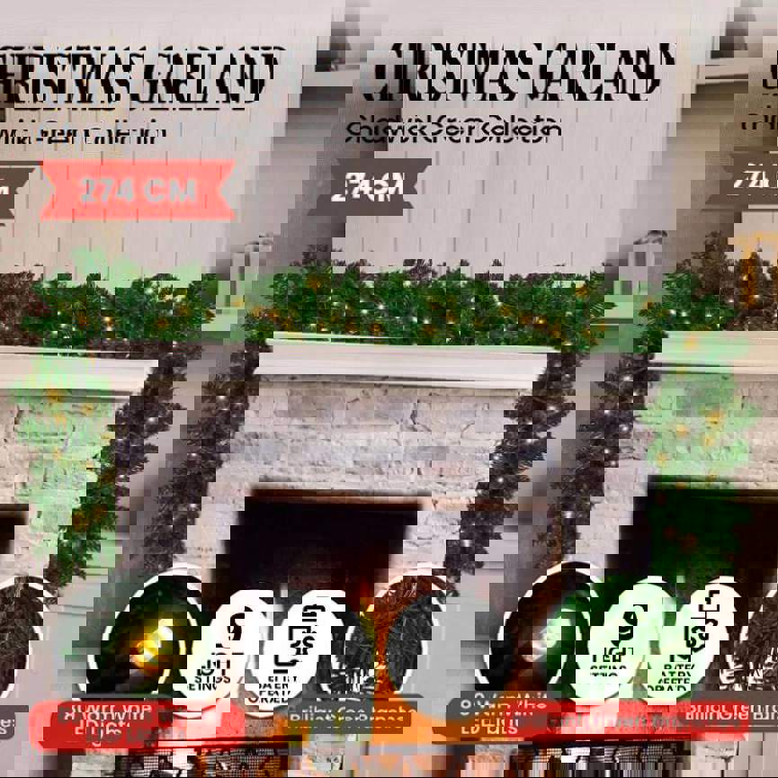 Christabelle 2.7m Christmas Garland with LED Lights Chadwick Tree Decoration Ornament 112_OPCG274