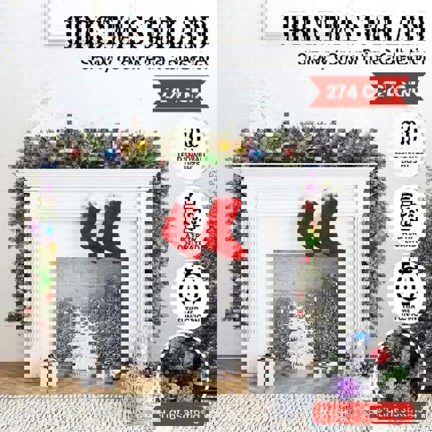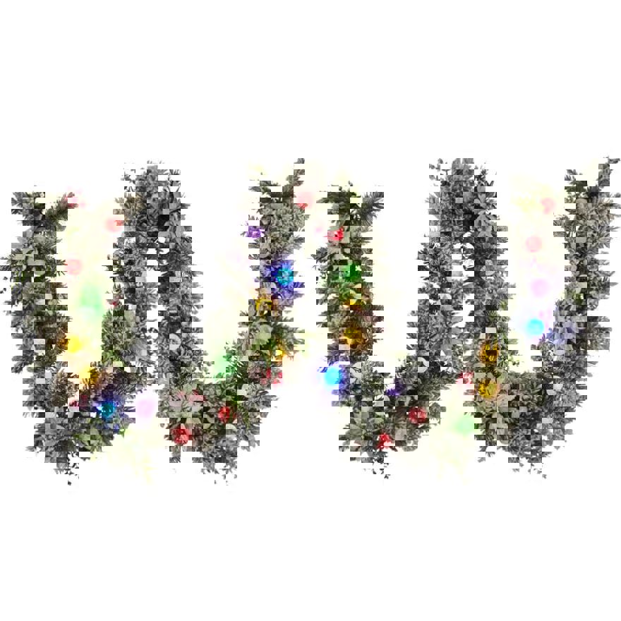 Christabelle 2.7m Snowy Christmas Garland with LED Coloured Baubles Lights Tree Decoration Orna 112_SENCR105