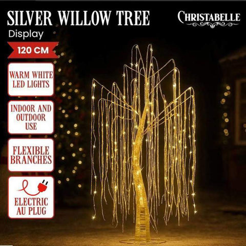 Christabelle Silver Willow Tree 120cm Christmas Display Warm White LED Lights Flexible Branches 112_MHA619