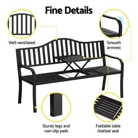 Gardeon Outdoor Garden Bench Seat Loveseat Steel Foldable Table Patio Furniture Black GB-STEEL-TABLE-BK