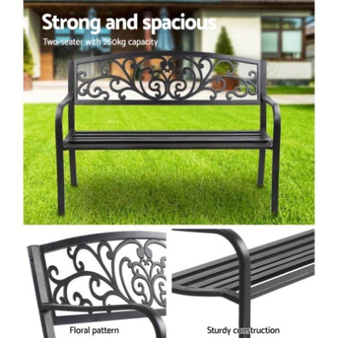 Gardeon Outdoor Garden Bench Seat Steel Outdoor Furniture 3 Seater Park Black GB-STEEL-XG201-BK