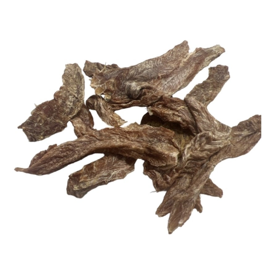 Dehydrated duck breast fillet, this wholesome treat is tender, easily digestible, and packed with protein to keep your pup energised and satisfied. With no artificial additives or preservatives, you can feel good about indulging your canine companion. Whether as a reward during training or a tasty anytime snack, our delicious jerky will have tails wagging and tongues drooling in anticipation. Treat your dog to a taste sensation they'll adore.